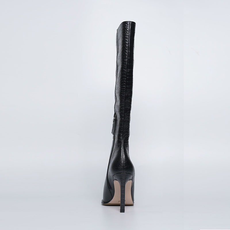 A bold statement in luxury footwear, our Croco Leather High Heel Boots redefine elegance and power dressing. Crafted for boutique brands and designer labels, these boots exude confidence and timeless appeal.